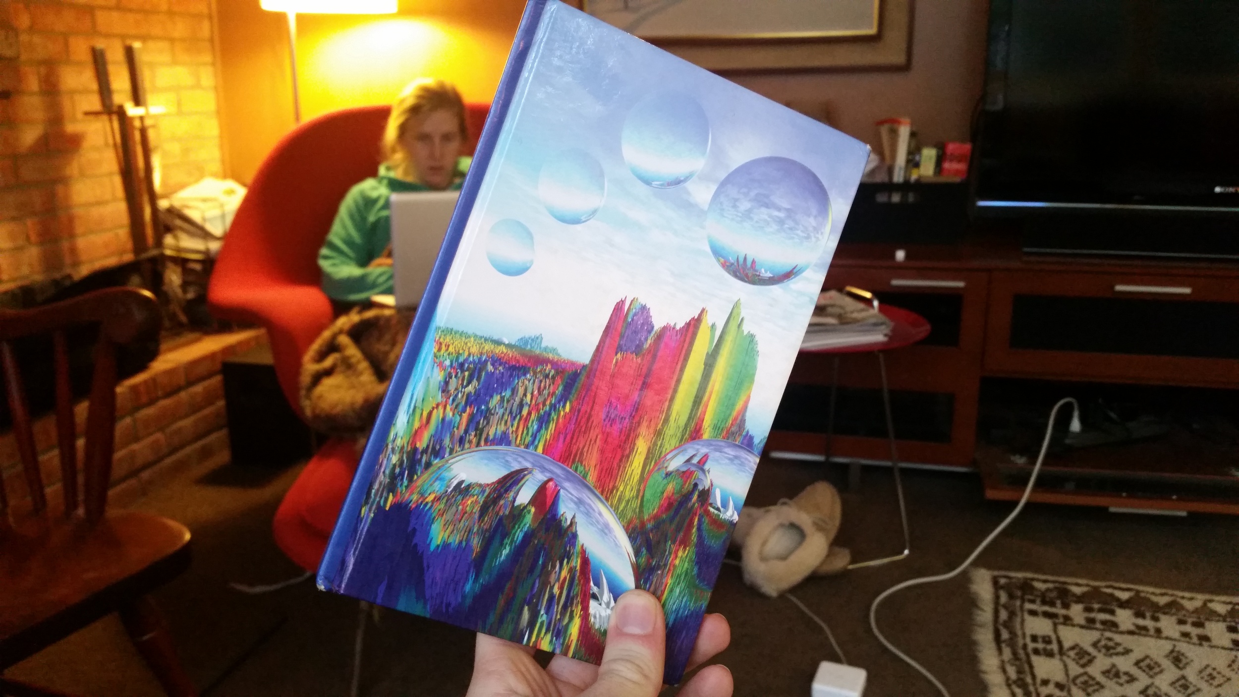 This book contains some very early attempts at writing. It's not very clear why I was writing these things, but it seems like I was doing this at home - there's no way any of these things could fulfill any school assignment. In fact, my first attempts at writing seem to have been pure postmodern poetry. I seem particularly interested in questions of God, mass media, and insulting my sister. Consider this example from the first page: